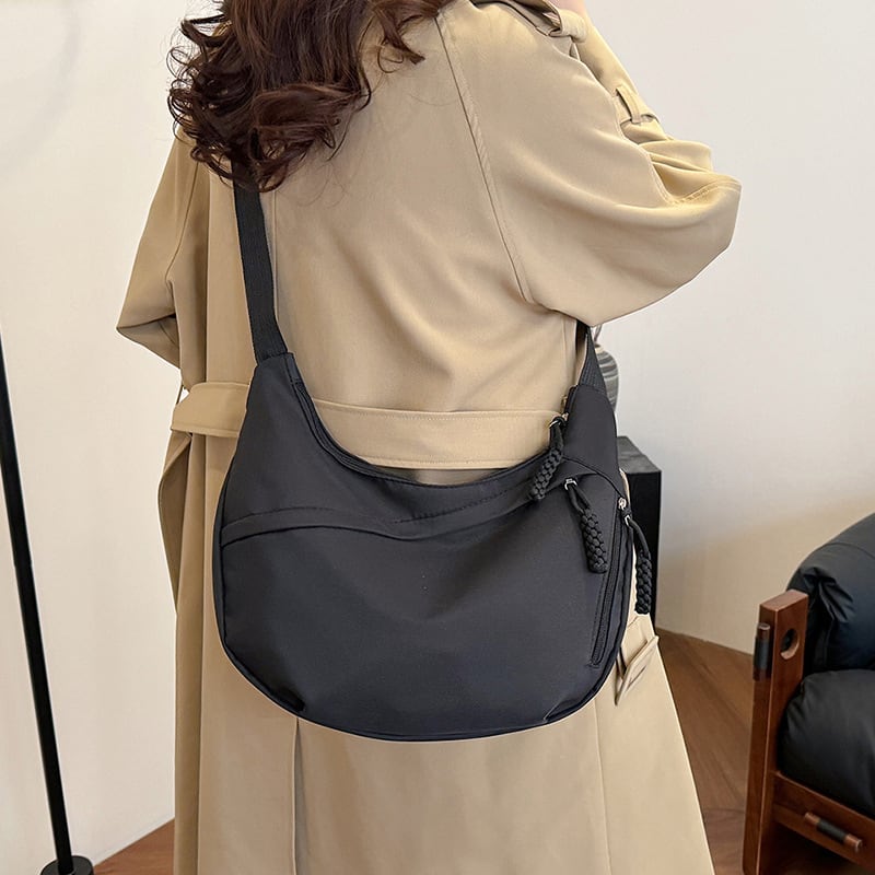 ミニマルなラインと計算された「落ち感」が魅力の、アーバンスタイルのショルダーバッグ。余計な装飾を削ぎ落としたデザインで、ユニセックスでも使えるクリーンな一品です。